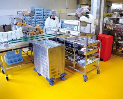 Мучная пыль способна легко воспламеняться, поэтому требование устойчивости напольного покрытия к температурам и горячим средам считается одним из главных. Промышленные эпоксидные и метилметакрилатные полы обеспечивают эффект антискольжения, что снижает риск появления травм у сотрудников предприятия.